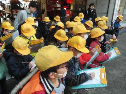 学校に帰ってからは,見てきたことや聞いてきたことを話し合い,早速,消防署見学新聞作りをしました。消防車のこと,消防士さんのこと,火災のこと,消防施設のこと,防火服のことなど,一番印象に残ったことは様々でした。