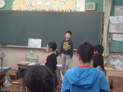 日直スピーチは,自分が水泳スクールで頑張っていることをみんなに伝えました。