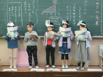 「おかみさんやたぬきがしたことを,もっと分かるようにして読みたいね」ということで,さらにパワーアップをしてから音読発表会をすることになりました。