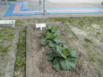 みんなが2年生のときにうえたキャベツが,こんなに大きくなっています。