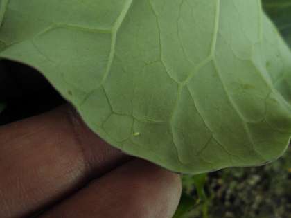 大きくなった葉をうらがえしてみると,小さなたまごがついていました。