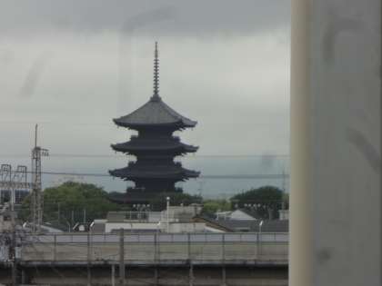 帰った後,窓の外を見ると東寺の塔が見えました。