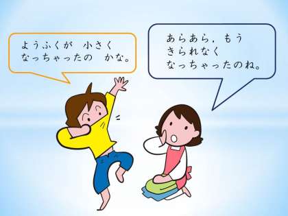 みなさんも こんな けいけんは ないですか?ふくが 小さくなったのでしょうか?そうでは ないですね。みなさんの 体が 大きくなったのです。みなさんは まい日 せい長 しています。でも なかなか 気づかない ことが 多いですね。