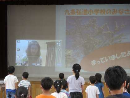 体育館のスクリーンに映った「話をしている先生の口の動きや表情」をよく見ながら,また手元にあるシナリオ原稿を見ながら,一生懸命に話を聞きました。