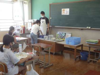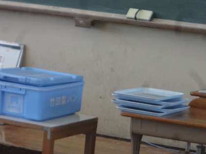 密を避けるために,給食は1人ずつトレイに自分の分を乗せて自分の席に持っていきます。
