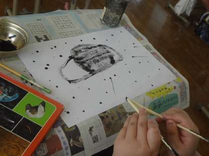 たった一色の墨だけど,水の混ぜ加減によってさまざまな表情が出てきます。