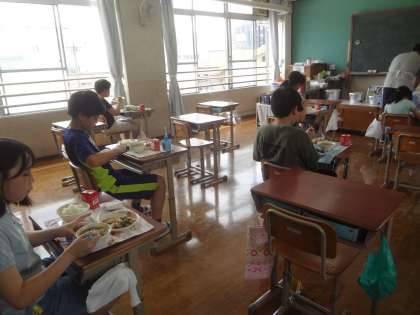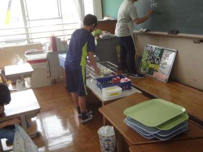 食器を返却する時も一人ずつです。しばらくは時間がかかりますが,楽しみな給食時間でした。