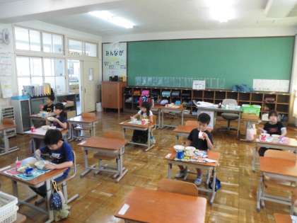 今週から久しぶりの給食が始まりました。去年までとは違うことがたくさんあり,とまどうことも多くありましたが,食べている表情からは久しぶりの給食をじっくり味わう,嬉しそうな姿が見られました。