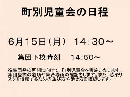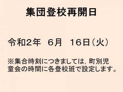 また,通常通りの教育活動を再開するにあたって,全校児童の一斉登校になりますので,感染リスクを可能な限り低減しながら,安全に登校できるように集団登校を再開いたします。
