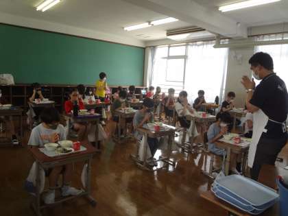 食前食後の準備・後片付けは今までよりも時間が必要ですが,時間内に食べるようにがんばりました。