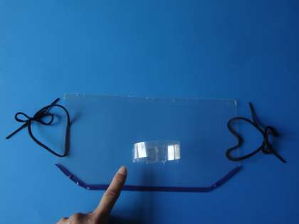 今回は,フェイスシールドをヒントに,あごに当てる部分を輪で作ってみました。