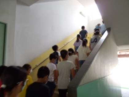 移動する学年は,静かにすばやく避難できていました。