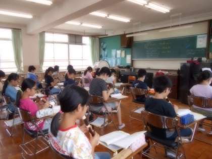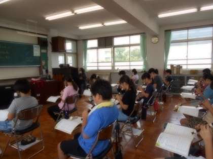 6年生は,まず,「雨のうた」の二部合奏に取り組んでいました。高い「ソ」の音もきれいに出して,美しい響きになっていました。