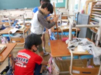 5年生は,椅子を机の上にあげて,掃き掃除をがんばっていました。黒板もきれいに消していました。