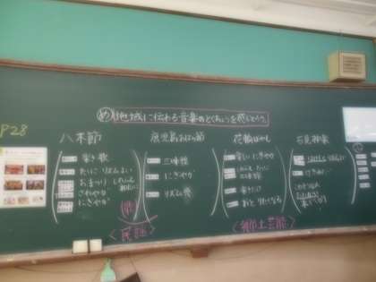 4年生は,音楽の授業で「地域につたわる音楽のとくちょうを感じ取りましょう。」というめあてで,学習しました。
