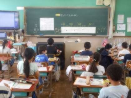 「2つの音が重なってきれいにひびいていました。」「歌とリコーダーを合わせるのは楽しかったです。またやりたいです。」「もっとうまくふけるように,練習したいです。」などやる気いっぱいのふりかえりを書いている子が多かったです。