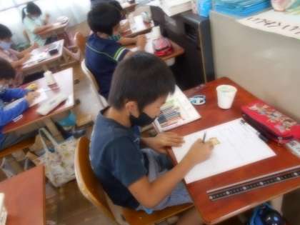3年生は,図工科の学習で,「仕組みを作って,アイディアスケッチをしよう。」というめあてで学習しました。