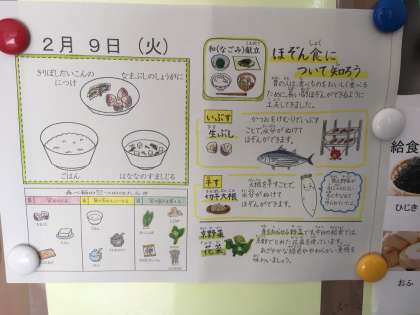 今日は2月のなごみ献立でした。保存ができる食品と旬の花菜を使いました。【なま節しょうが煮】は,九条弘道小学校の給食調理員さんが得意とする給食の1つです。教職員の中でも『九条弘道小に来て好きになった』という声が多数いただいています。1年生の教室では,『サイコロステーキや〜!』とおいしそうに頬張り,増やしを求める児童の姿も。子どもの発想力はすごいな〜と思う給食時間の様子でした。