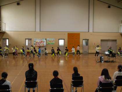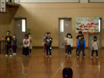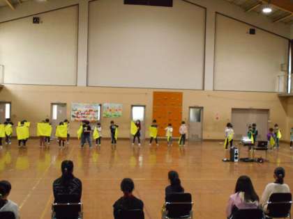 1年生は,6年生を送る会で,楽器も入れて6年生へエールを送っていました。その後,「紅蓮華」の曲に合わせて,黄色のバンダナをもって元気に踊っていました。