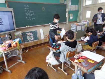 朝のパワーアップの時間に,それぞれの学年の教室に,新聞を掲示したこと,アンケートを書いてほしいことをお知らせに行きました。