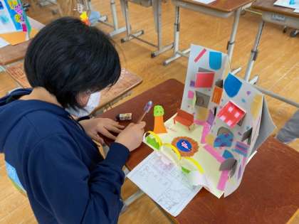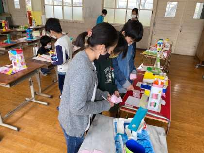 作品展が中止になってしまったため,2年生と4年生が図工の時間に作った作品を多目的室に「Shining Star☆〜シャイニングスター〜作品展として展示しています。