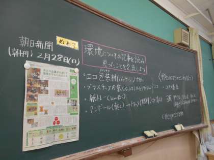 4年生は,今日は朝日新聞の環境の記事を読んで学習しました。