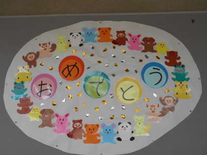 体育館の東側の掲示板に貼られた,卒業を祝う「おめでとう」の素敵な掲示です。