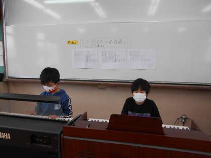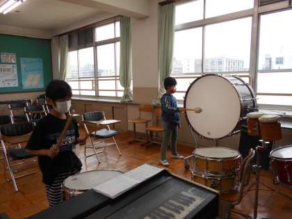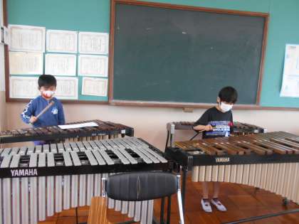 今日は,音楽室でオルガン・木琴・大太鼓・小太鼓の練習に取り組みました。2人とも真剣に練習をしていました。