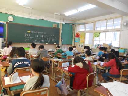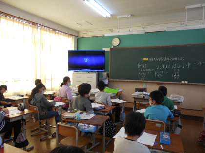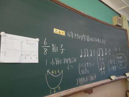4年生は,音楽科で「音楽のききとりの学習のおさらいをしよう。」というめあてで学習しました。