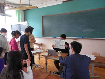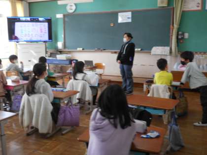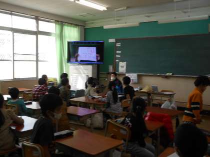 6年生の教室の隣の部屋から,児童会の子どもたちが,ズームで各学年の教室にクイズをすと,教室でグループに分かれ,答えを相談してホワイトボードに答えを書いていました。楽しい企画で,みんな答えがあっていると,歓声をあげていました。