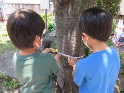最後に,正門のサクラの木の周りの長さを測りました。