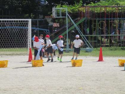 一緒にボールを運んだり,リレーをしたりしました。