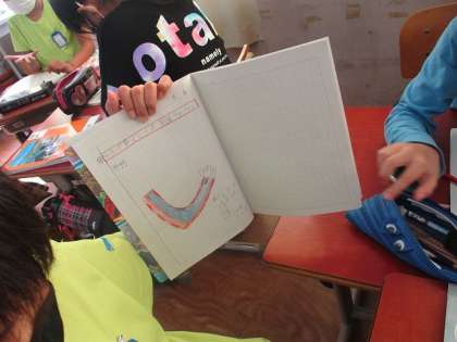 考えたことを友達と交流をしました。見えない部分ですが,根拠をもって考えました。