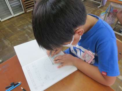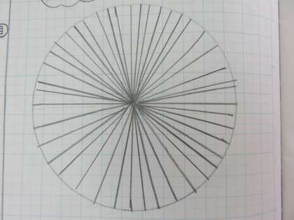 算数の学習で,円の中に半径をたくさん書き,長さがどのようになっているのかを調べました。