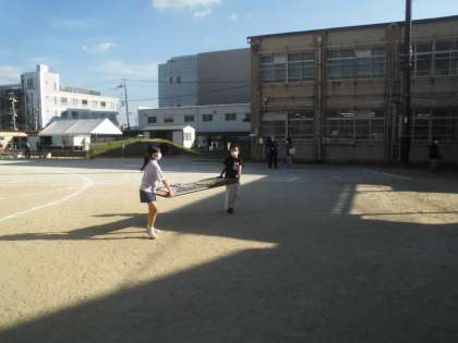 全学年のスポーツフェスティバルが終わると、6年生が待っていましたとばかりに運動場に飛び出し、片付けを始めました。さすが、最高学年!