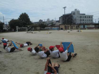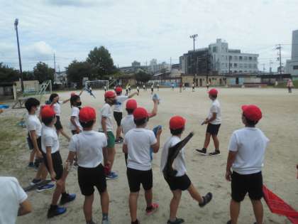 緊急事態宣言中は、スポーツフェスティバルに向けての練習は、学年ごとで行っています。体育の時間に運動場に出てみると、前の時間に練習していた3年生がダンスを踊っていました。それを見た6年生は後ろのほうで音楽に合わせて踊り始めました。一緒に練習できない日々が続きますが、思わずコラボできた日でした。