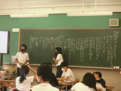 学年全員で修学旅行に向けての「めあて」を考えました。全員でめあてに入れたいキーワードを考えると、「五分前行動」「ルールを守る」「思い出」の3つに決まりました。3つのキーワードをうまく使って、言葉にしました。その結果「ルールを守り、五分前行動することで思い出に残るいい旅を」にきまりました。このめあてをもって、楽しい修学旅行にしたいと思っています。