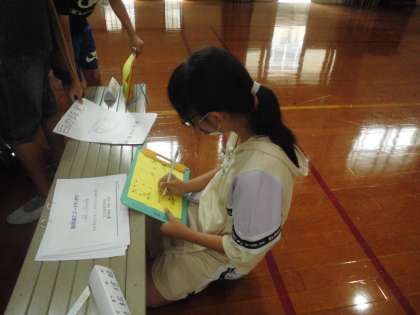 6年生は、1年生〜6年生の全員の作品を見て、感想を書き本人に渡すことにしました。下学年のためにも精力的に作品の良いところを探す6年生は頼もしい存在です。
