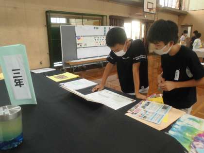 校内の自由研究作品展がありました。1年生から6年生までの作品が体育館に並びました。どんな作品があるのかを鑑賞に行きました。