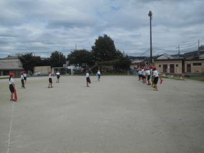 3年生と6年生が一緒にダンスをする団体演技では、一部分子どもたちが考えたダンスがあります。音楽のサビの部分です。6年生が考え、友達に伝えたり、動画で3年生に伝えたりしました。