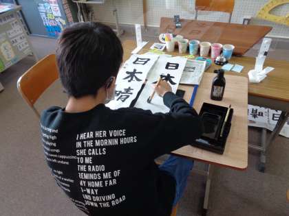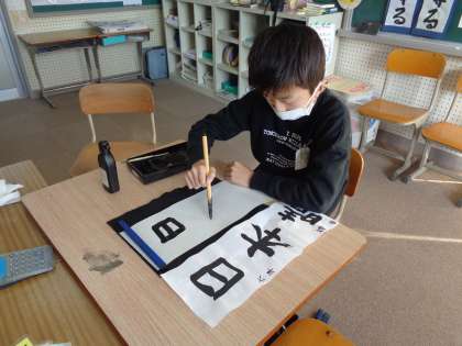 手本を見ながら,字のバランスに注意して心を込めて書きました。