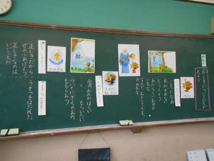 2年生は,道徳科で「金のおの」のお話を聞いて学習しました。