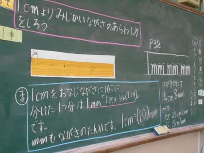 2年生は,算数科で「1センチメートルよりみじかいながさのあらわし方をしろう。」というめあてで学習しました。