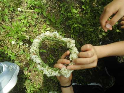 遊具の周りで,春を見つけて楽しんでいる様子も