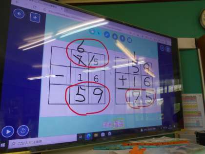 次に,ロイロノートでみんなに問題を送り,答えの確かめの練習をしました。みんな,タブレット上で,答えの確かめの問題にチャレンジしていました。