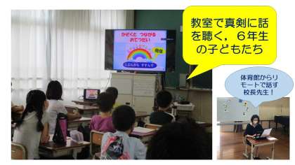 1学期、最後の日、終業式を迎えました。新型コロナウイルス感染症予防対策として、今回も全校で集まることは叶いませんでした。けれども、各教室で真剣に校長先生のお話を聴き、1学期のことを振り返る姿が見られました。