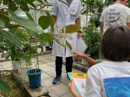 実際に蝶にふれ合ったり,科学体験をしたり,