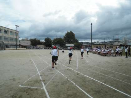 5,6年生の100M走。高学年らしく力強い走りでした。