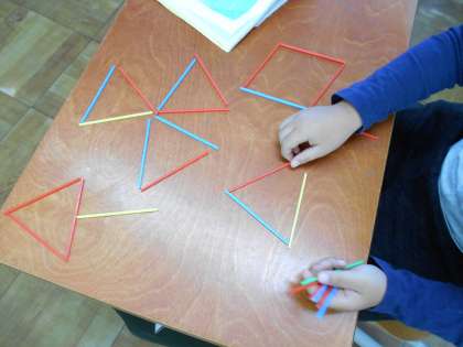 棒を使って、いろいろな形をつくることを楽しみました。