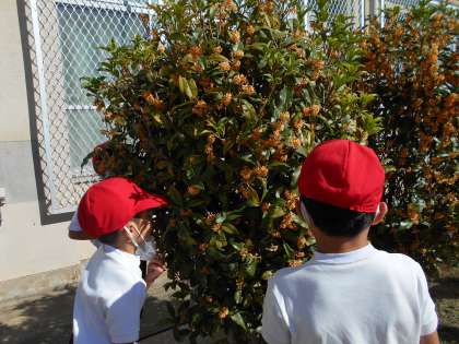 キンモクセイのいいかおりを楽しんでいます。